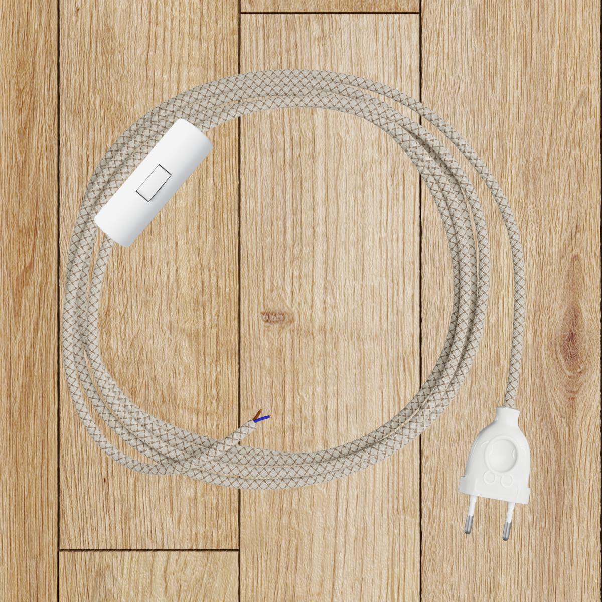 Fabric cable : 2.14mt. [XZ2RD63] Bark and Beige Criss-Cross Textile Cable - The Original Creative-Cables - RD63 round 2x0.75mm / 3x0.75mm - N° of cores: 2x0.75
