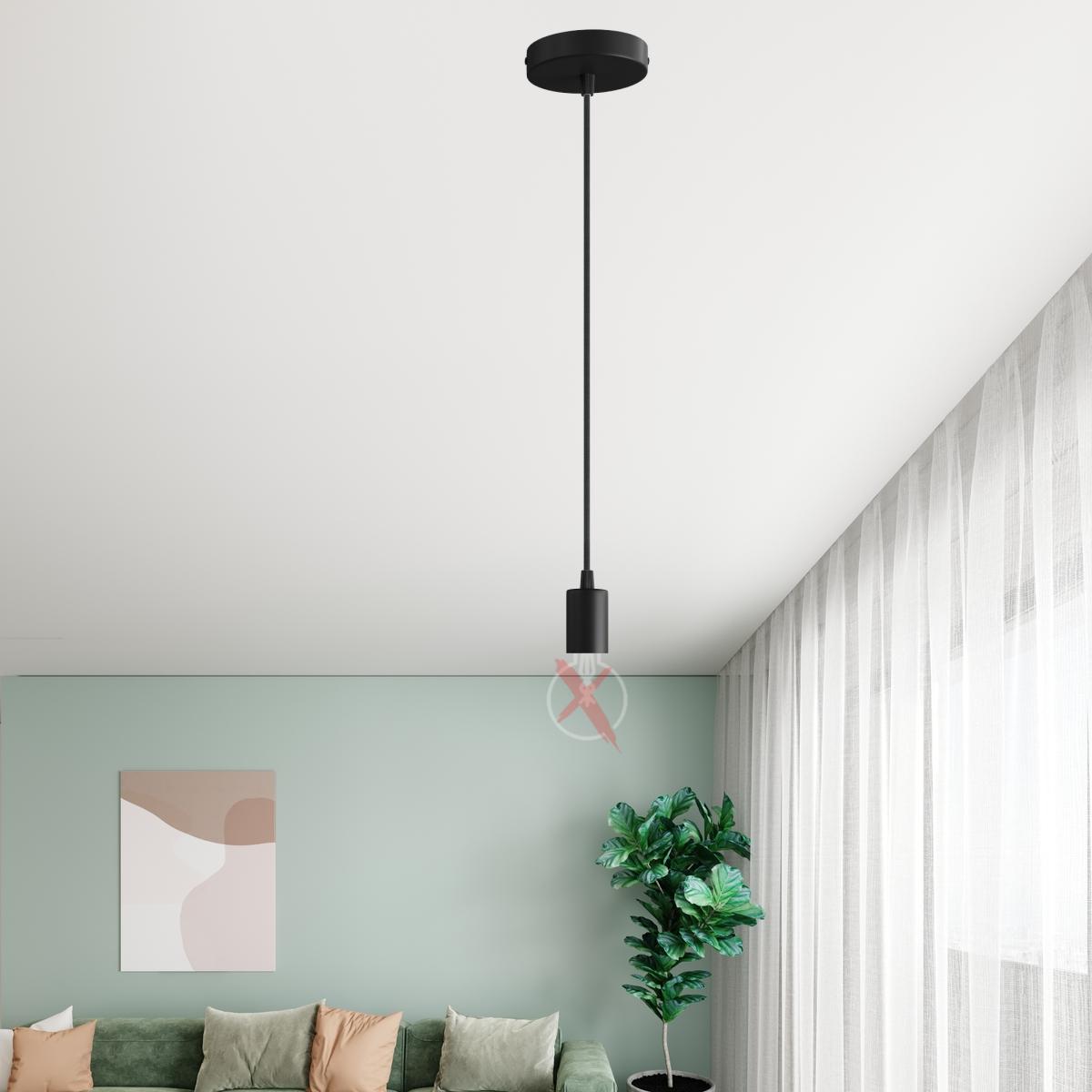 Douille : 1X [KBM4011VN] Kit douille E27 cylindrique en métal - Cable clamp: Conical, Finish: Noir
