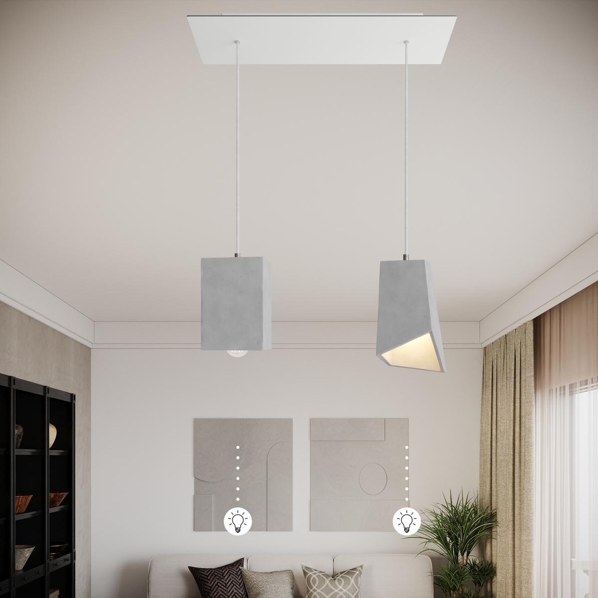Paralume sinistra : 1X [KPAC03CGL] Paralume in cemento Cubo per lampada a sospensione, completo di serracavo e portalampada E27 - Finish: Light cement